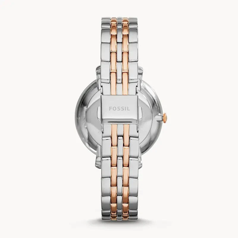 La montre Fossil ES3634 possède un bracelet en acier inoxydable bicolore.