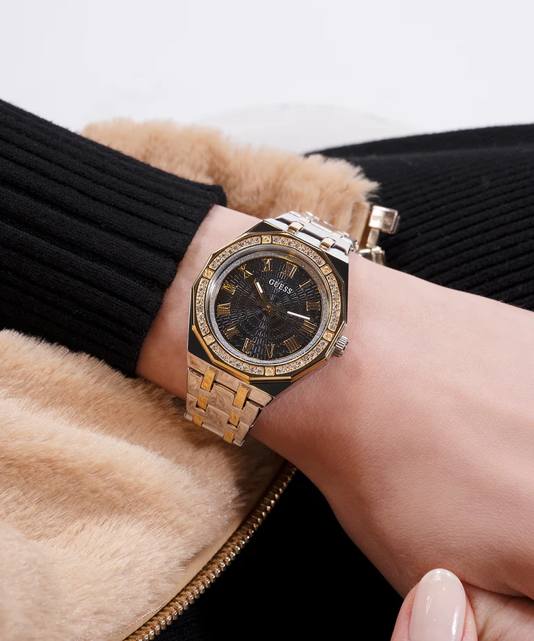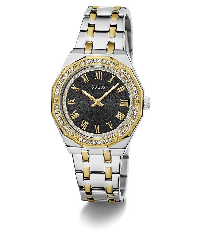 La montre Guess GW0770L4 possède un boîtier en acier inoxydable bicolore de 36 mm.